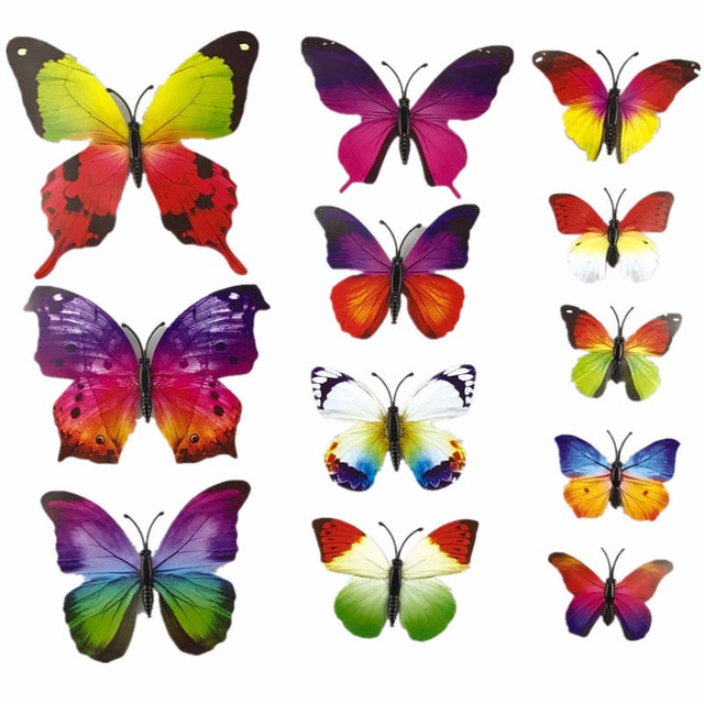 (12 шт) Набір метеликів 3D на скотчі ФІОЛЕТОВІ кольорові
